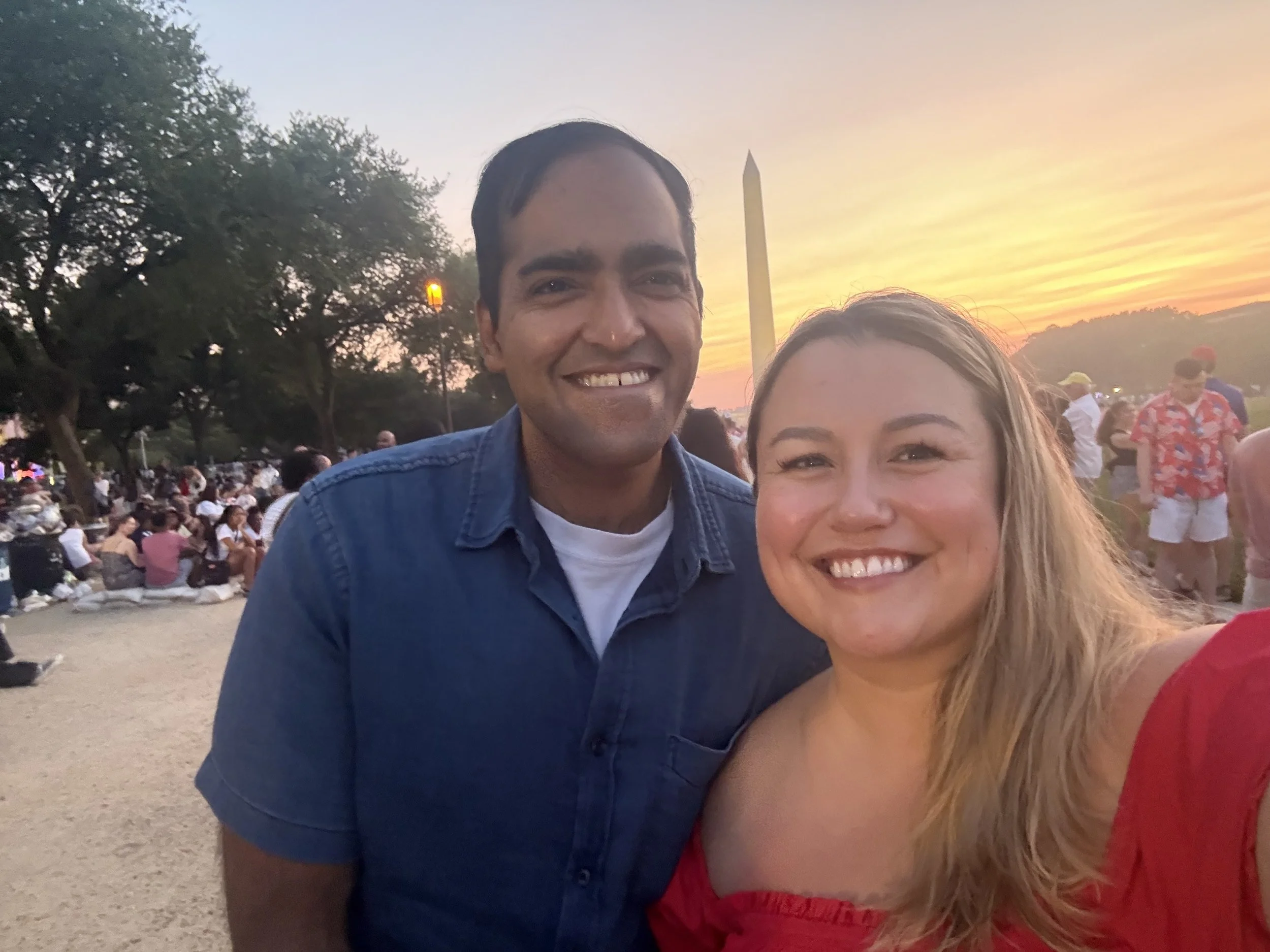 Sara and Abhishek met on a warm October afternoon in DC for what was supposed to be a quick coffee and gelato date after connecting on a dating app. Their first meetup quickly turned into dinner and a late-night stroll through the city as they talked the night away. There was an immediate sense of peace and understanding between them. The immediate connection they felt that day was the beginning of their love story. The rest is history.